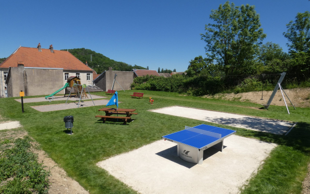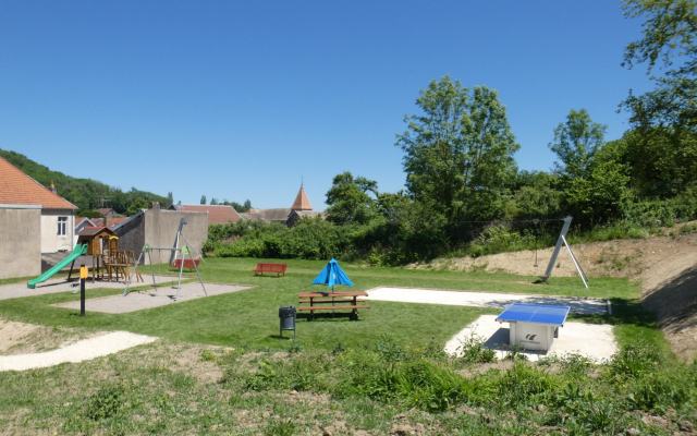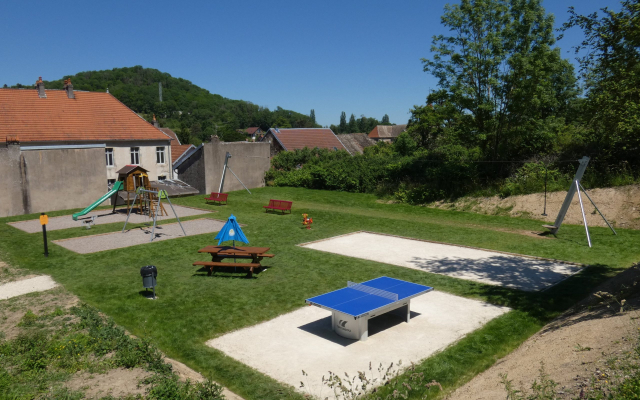 Cette aire de jeux a été réalisée par une société spécialisée conformément à la réglementation en vigueur et comprend des jeux pour tous les âges :